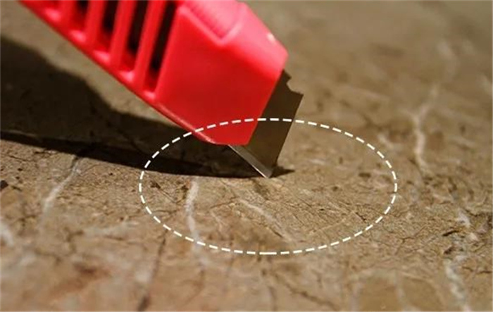 钢刷试验轻松通,那么在接触面积更小,更锋利的刀锋试验下,瓷砖是否能够同样无伤通关呢?