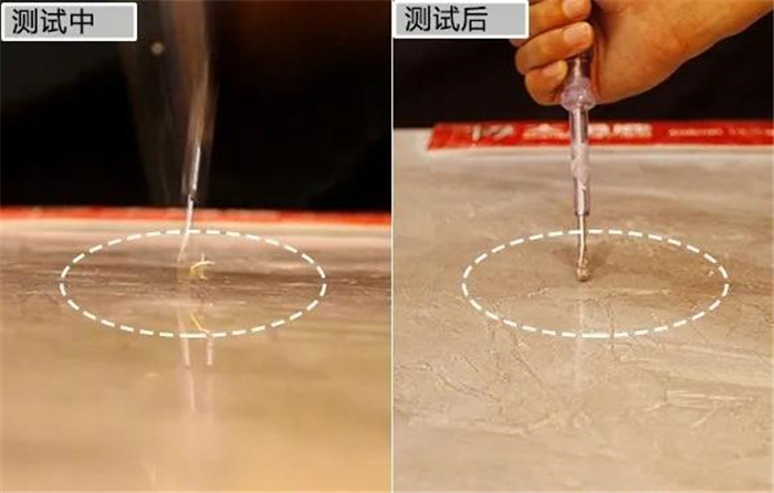 结果大角鹿瓷砖表现超出预期效果,被5级硬度的石材刮磨也没有出现刮痕,看来耐磨性的工艺水准确实很赞,釉面能经得起时间检验。