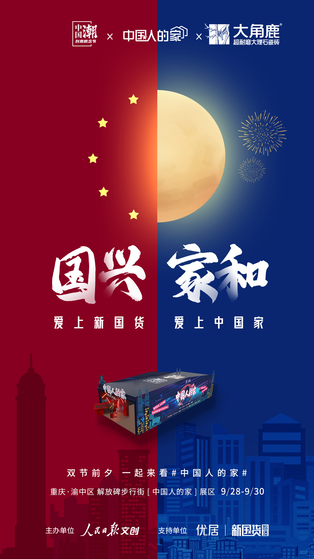 在老字号国民品牌纷纷发力的同时,作为与国人生活息息相关的“家居圈”,也刮起了一股“新国潮”。9月28日-9月30日,人民日报携手大角鹿、尚品宅配、顾家家居、恒洁卫浴等新国货品牌联袂举办的“中国人的家”快闪展将于重庆渝中区解放碑惊艳亮相。