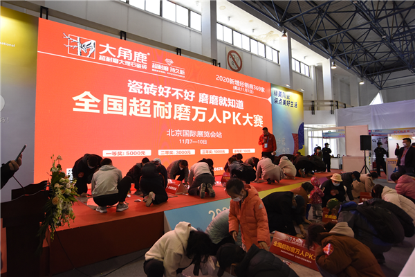 “大角鹿全国超耐磨万人PK大赛”活动已经在全国举行上千场,每场活动都能吸引上千位消费者的关注,大角鹿成为展会或者卖场人气最火的品牌。这是大角鹿品牌第一次参加中国(北京)国际精品陶瓷展览会,也让北京消费者亲自体验到大角鹿超耐磨。