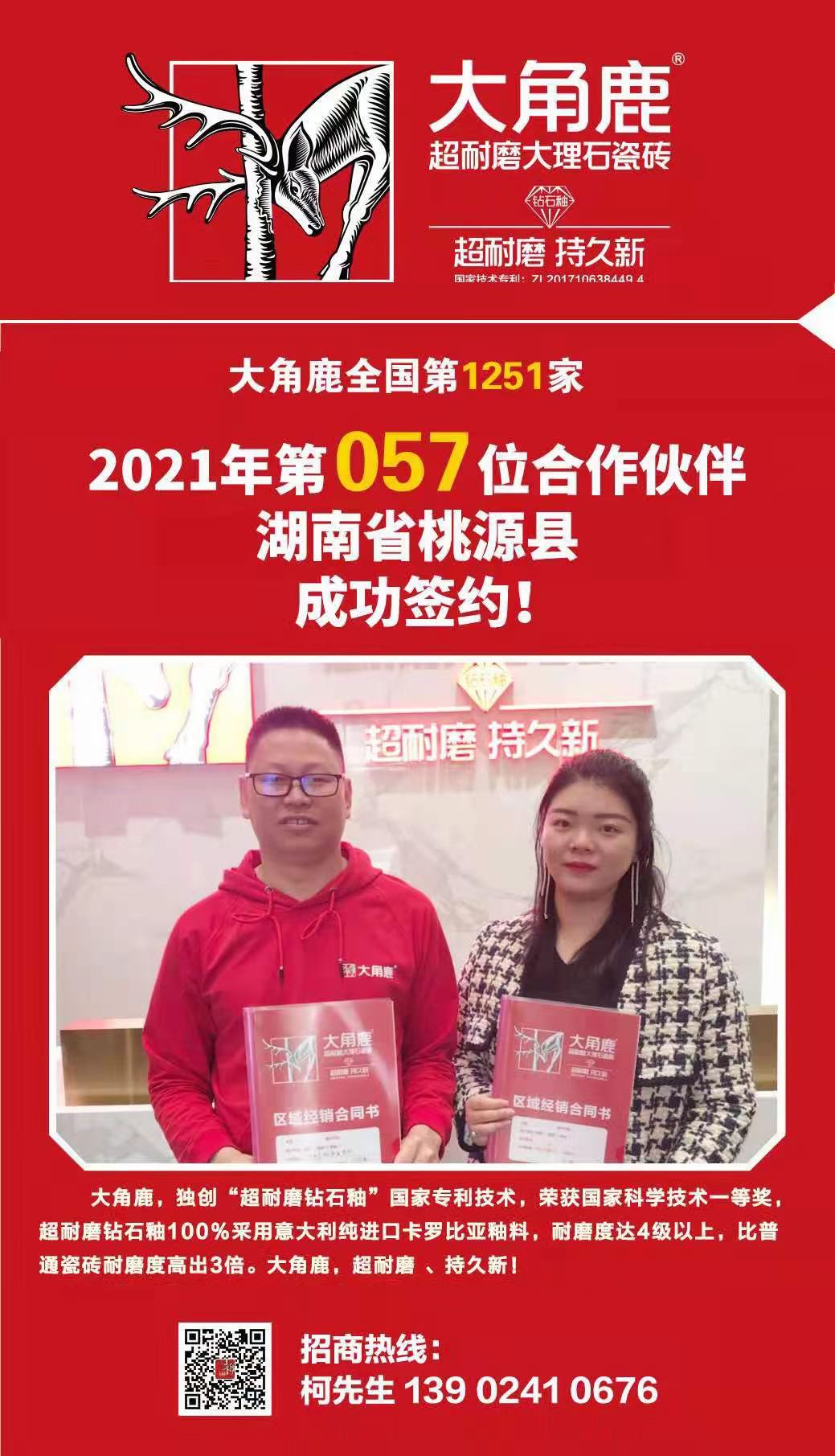 非常感谢雷总对大角鹿超耐磨大理石瓷砖支持与认可!祝生意兴隆!
