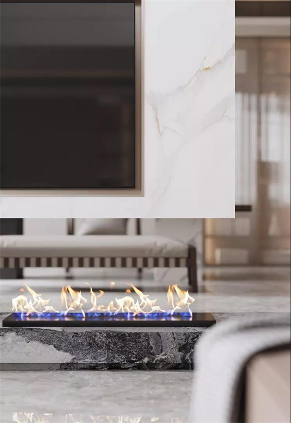设计师根据业主需求选择了木色跟纯白色相互融汇的现代轻奢风格,会客区用时尚简洁的石材纹理茶几配上金彩汇1068·爱尔兰灰,高级灰瓷砖与白色饰面呈现鲜明的层次感。