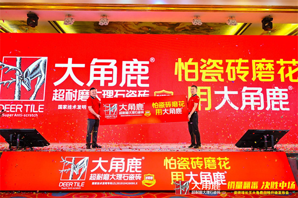 2023年7月19日,“销量翻番,决胜中场——瓷砖增长王大角鹿战略升级发布会”在佛山隆重举行。中国陶瓷行业的500位嘉宾和知名人士以及新浪、腾讯、搜狐、广东电视台、广州日报等50多家全国主流媒体与行业媒体齐聚一堂,共同见证大角鹿战略全新升级。