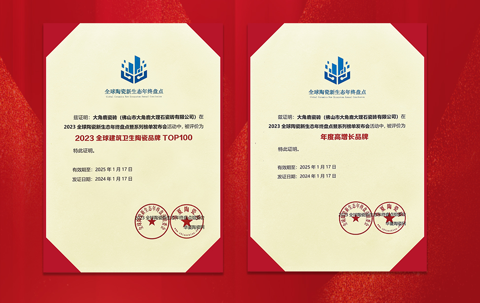 大角鹿此次入选“全球建筑卫生陶瓷品牌TOP100 榜单”和荣获“年度高增长品牌”奖项,是行业对大角鹿的高度认可,也是大角鹿的实至名归!