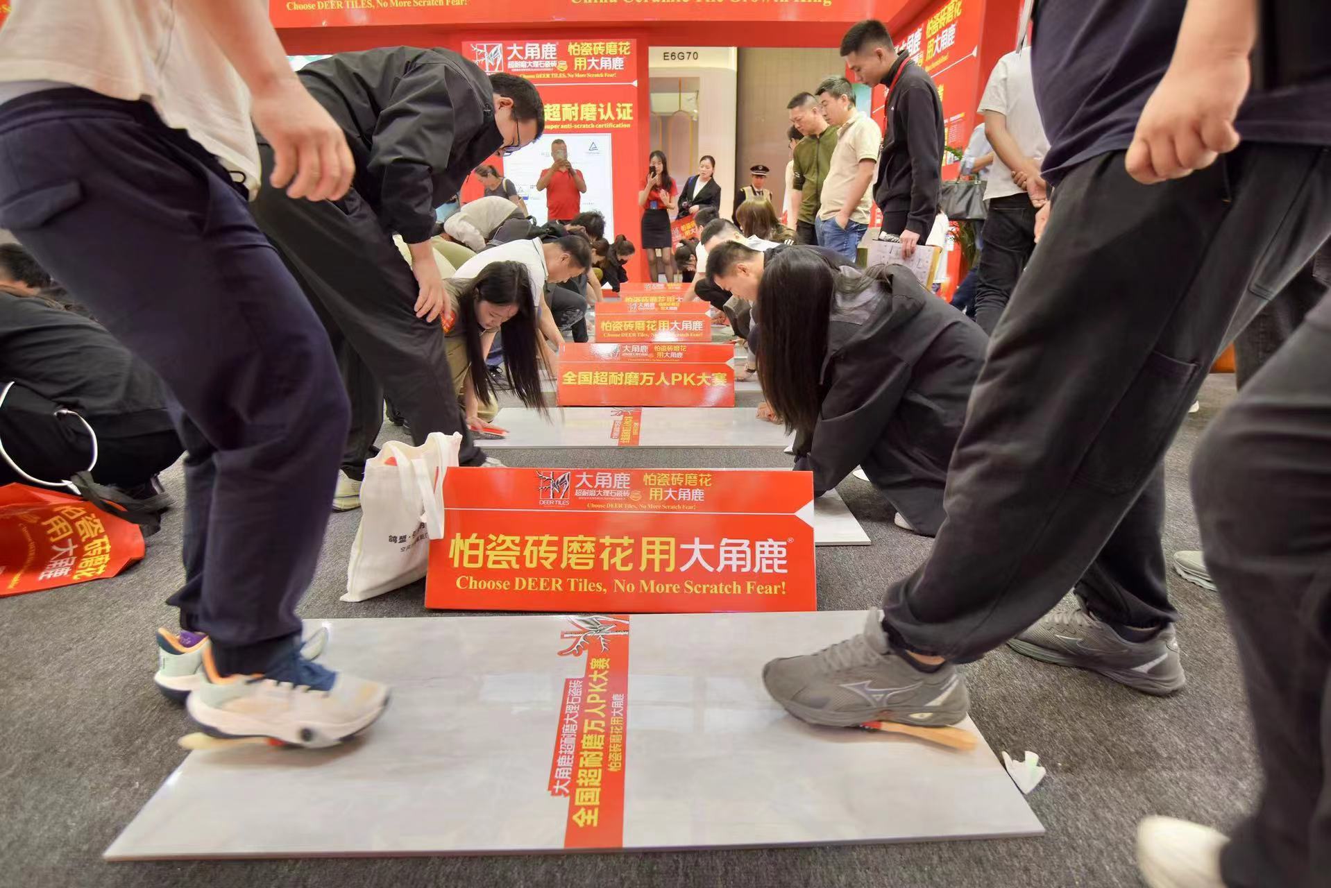 国内外观众争相参与超耐磨PK赛,这一盛况被定格为本届上海国际厨卫展的经典“名场面”,经现场数万国际观众打卡和12家主流媒体直播,180万+全球观众共同见证了大角鹿超耐磨品质。
