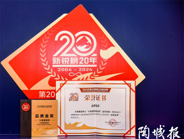 新锐榜的评选过程严格而公正,专家评审团通过实地走访,从技术工艺、产品品质、市场表现等多个维度进行综合评选。大角鹿能够同时获得“陶瓷领军品牌”和“品质金奖”两项大奖,不仅体现了其强大的综合实力,也彰显了其在行业内的领先地位。