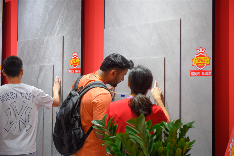 为了让参观者更直观地感受大角鹿超抗污柔光砖的卓越性能,大角鹿在佛山陶博会期间特别举办了“大角鹿超抗污万人PK大赛”,众多经销商、业界同仁、行业大咖及消费者们现场参与评测。来自四川的经销商李先生在亲身体验了大角鹿超抗污柔光砖后表示,大角鹿柔光砖的抗污性能远远超过了市面上的其他同类产品:“现在很多品牌都在做柔光砖,但真正能做到抗污几乎没有,大角鹿的柔光砖不仅超耐磨,而且是真抗污,这一点非常了不起!”