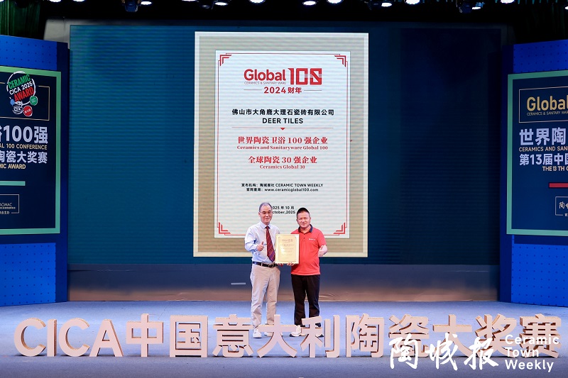 自2021年起,陶城报每年发布《世界陶瓷卫浴企业100强》统计榜单。世界陶瓷卫浴100强排行是由陶城报社发布的、陶瓷卫浴全产业链唯一一份100强统计排行名单。统计对象包括全球陶瓷企业、卫浴企业、陶瓷装备与材料企业,排名主要以2024财年企业营收、产量等数据为依据,统计遵循客观、公正、科学、严谨的原则。作为超耐磨瓷砖发明者,大角鹿已经连续3年入选“世界陶瓷卫浴100强企业”、“全球陶瓷30强企业",背后折射出大角鹿发展战略、经营管理,盈利能力等多方面的价值内核。