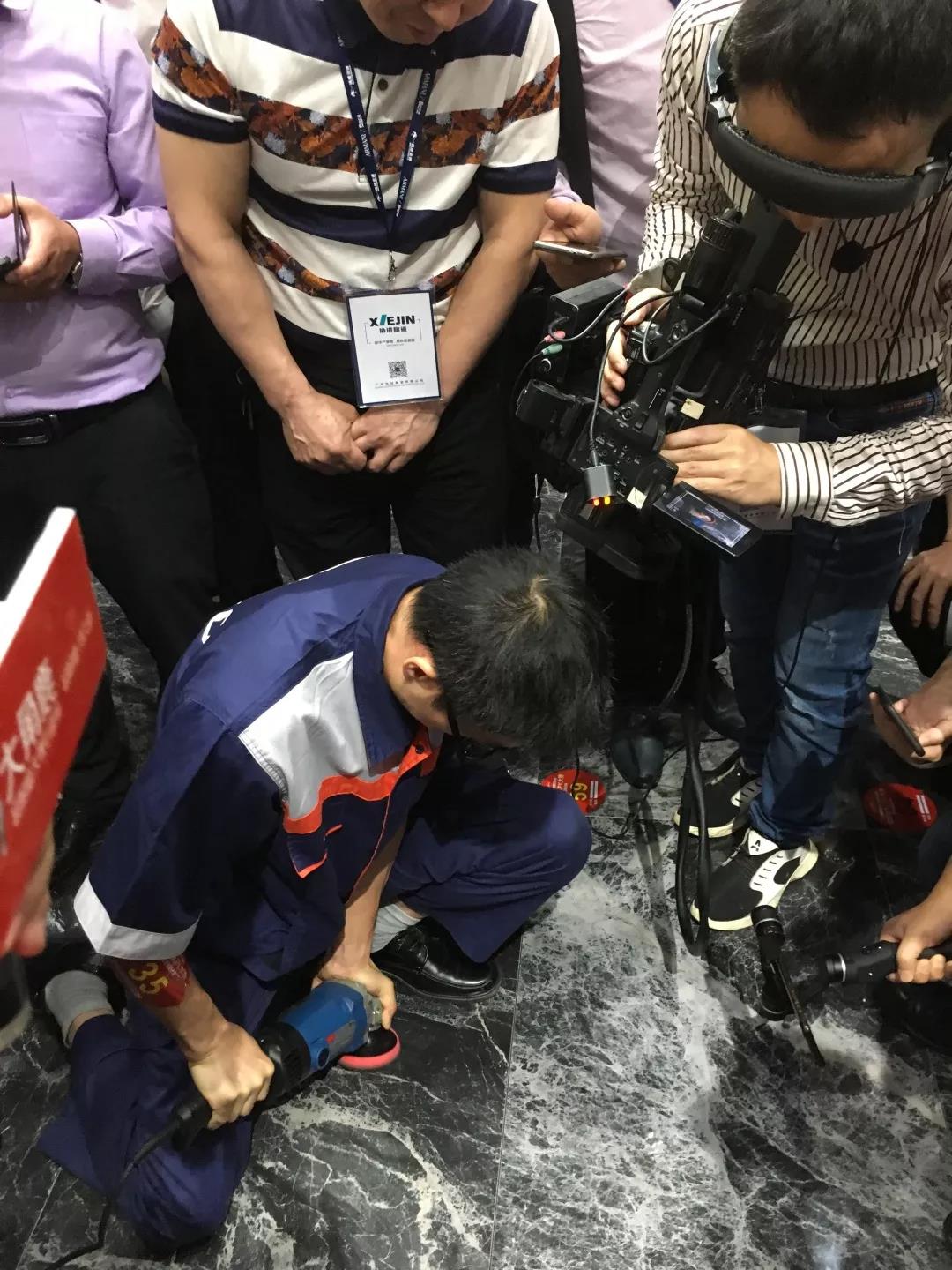 ▲钢刷和打磨机都磨不花的大角鹿超耐磨大理石瓷砖,选手们最后只能协商平分奖金。