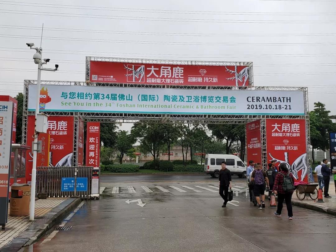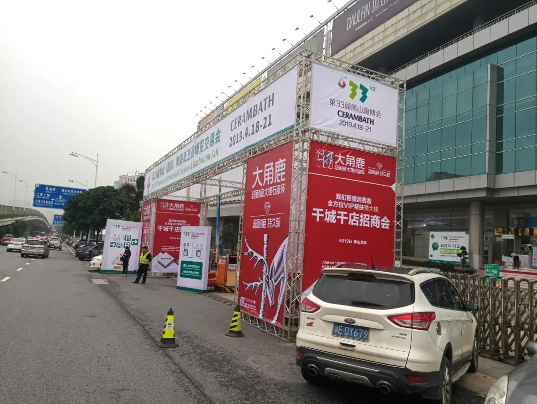 在佛山陶瓷“双展”期间,大角鹿出现在了各个场馆: