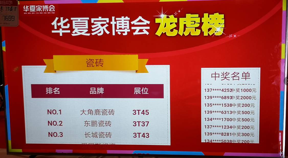 据沈阳家博会官方现场公布的数据,大角鹿签单量排名第一名,遥遥领先其它瓷砖品牌。