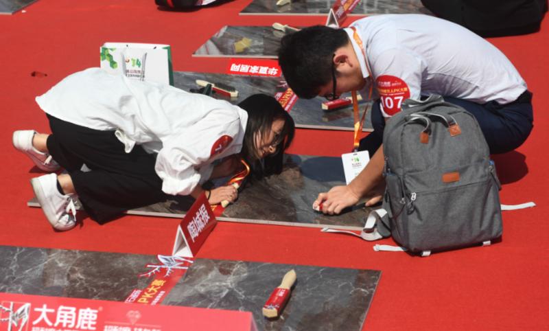 瓷砖好不好,磨磨就知道!在第34届佛山(国际)陶瓷及卫浴博览交易会现场,大角鹿超耐磨大理石瓷砖举行“超耐磨万人PK大赛”,参赛者们一起用钢刷工具和打磨机,使出浑身解数摩擦大角鹿大理石瓷砖产品,切身体验大角鹿产品的超耐磨品质。